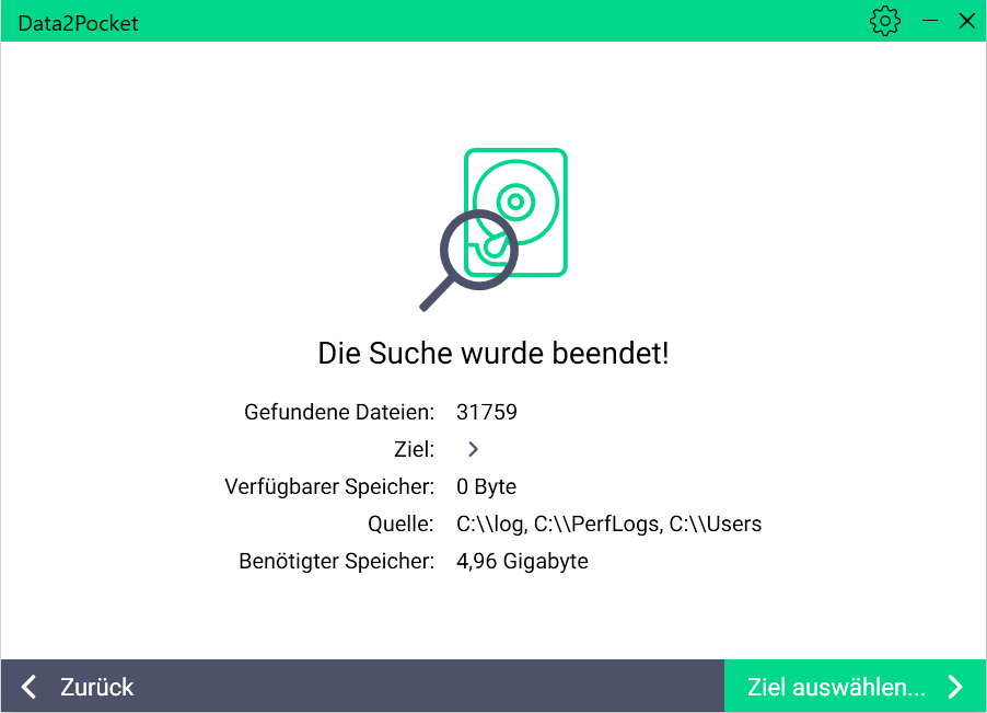 Sobald Die Suche beendet ist, werden Ihnen die Ergebnisse mit allen relevanten Informationen übersichtlich angezeigt.
